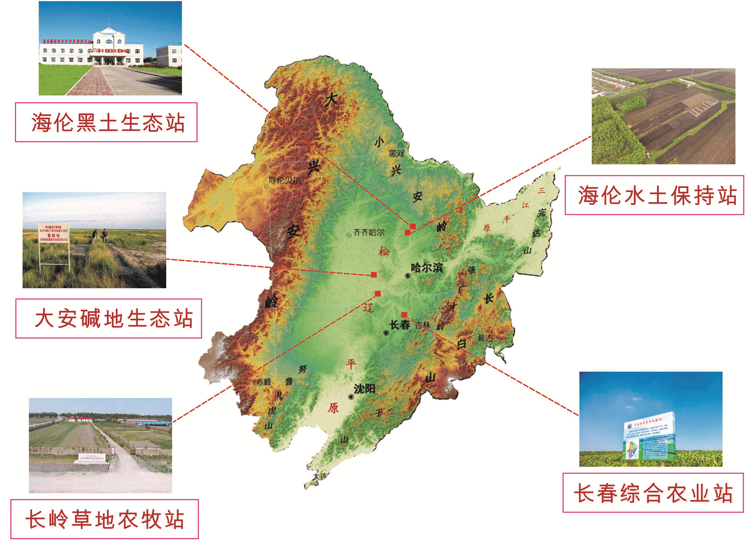東北地理所構建了以海倫國家生態站為核心的中國科學院東北農業監測網絡,包括:中國科學院海倫農業生態實驗站(黑龍江海倫農田生態系統國家野外科學觀測研究站)、中國科學院大安堿地生態試驗站、中國科學院長嶺草地農牧生態研究站、中國科學院海倫水土保持監測站、中國科學院長春綜合農業試驗站,形成了覆蓋東北主要糧食產區的農業生態系統野外長期定位觀測網絡。